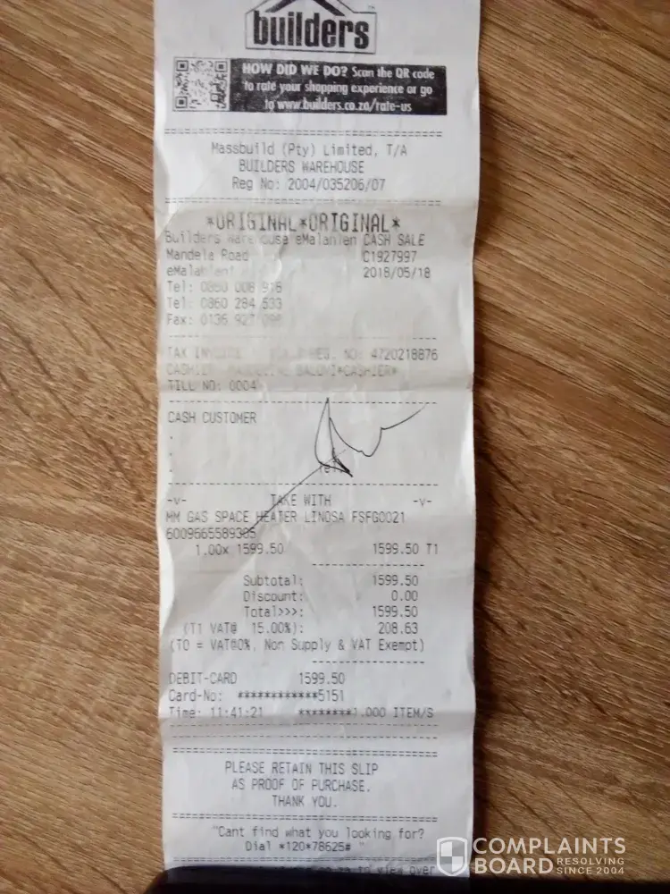 21.11.2017 at 17:15 I went to Builders warehouse in Gezina, Pretoria.