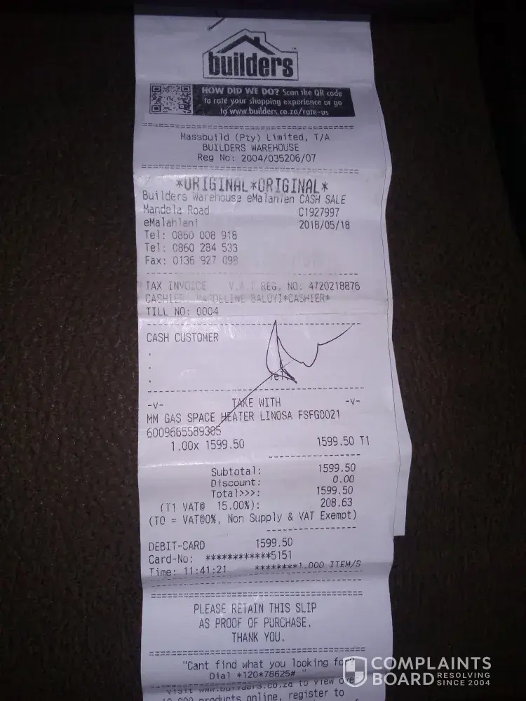 So I spent R350 more at builders on a geyser which I could have gotten elsewhere, due to the false warranty information from one of its staff members.