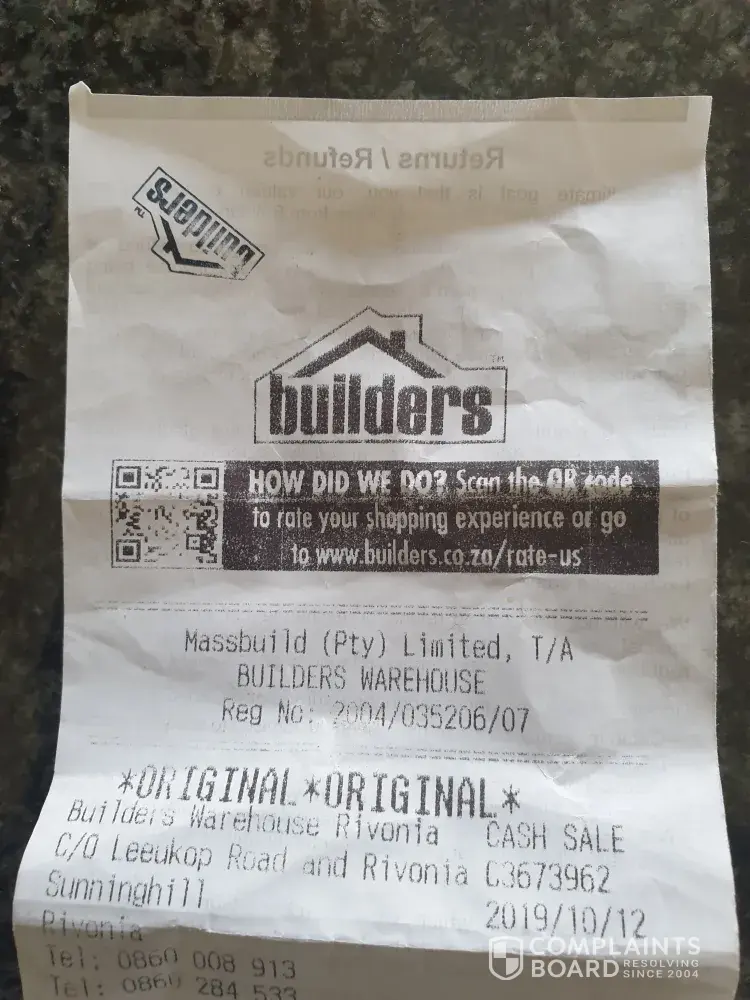 On Sat 12th Oct 2019, I went into the builders warehouse store in Rivonia, made an order for a number of curtain rods and blinds that I needed for a project I had planned for today 19th Oct 2019 @ 10H00.