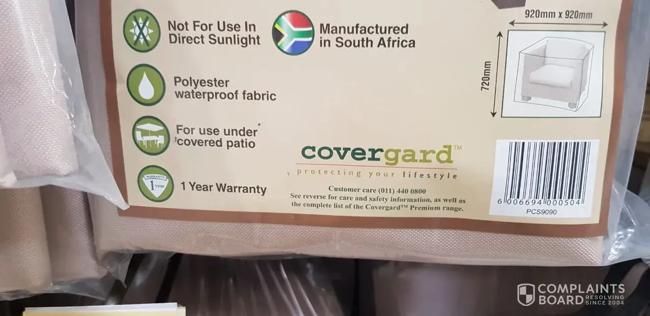 My Name is Mike Peri (Cell# +[protected]) - I am extremely disappointed with the product I purchased from Builders Warehouse - it is the Cover Guard chair protectors for patio/garden sets.