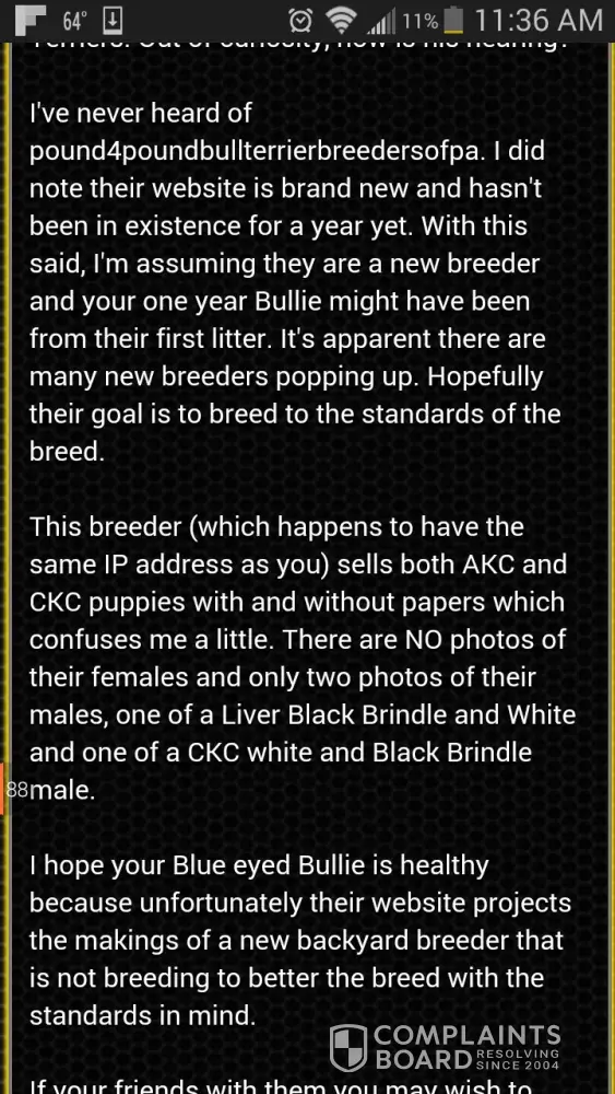 Keep thinking using other breeders names on this complaint will excuse your disgrace of a business your getting called out call me a troll or whatever you want cause we all know u like to fabricate the truth and play victim