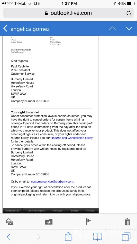 Dear Burberry customer service,