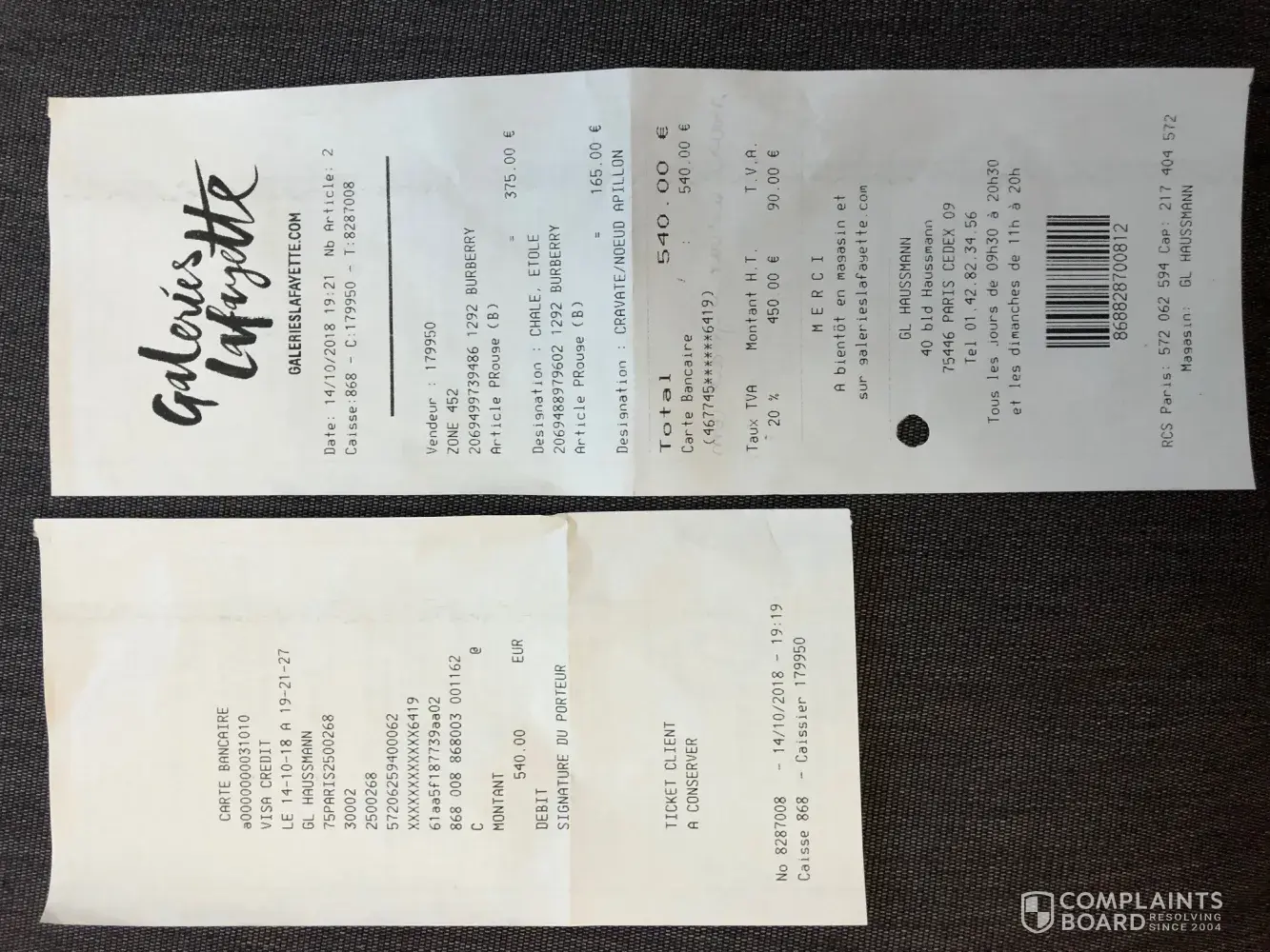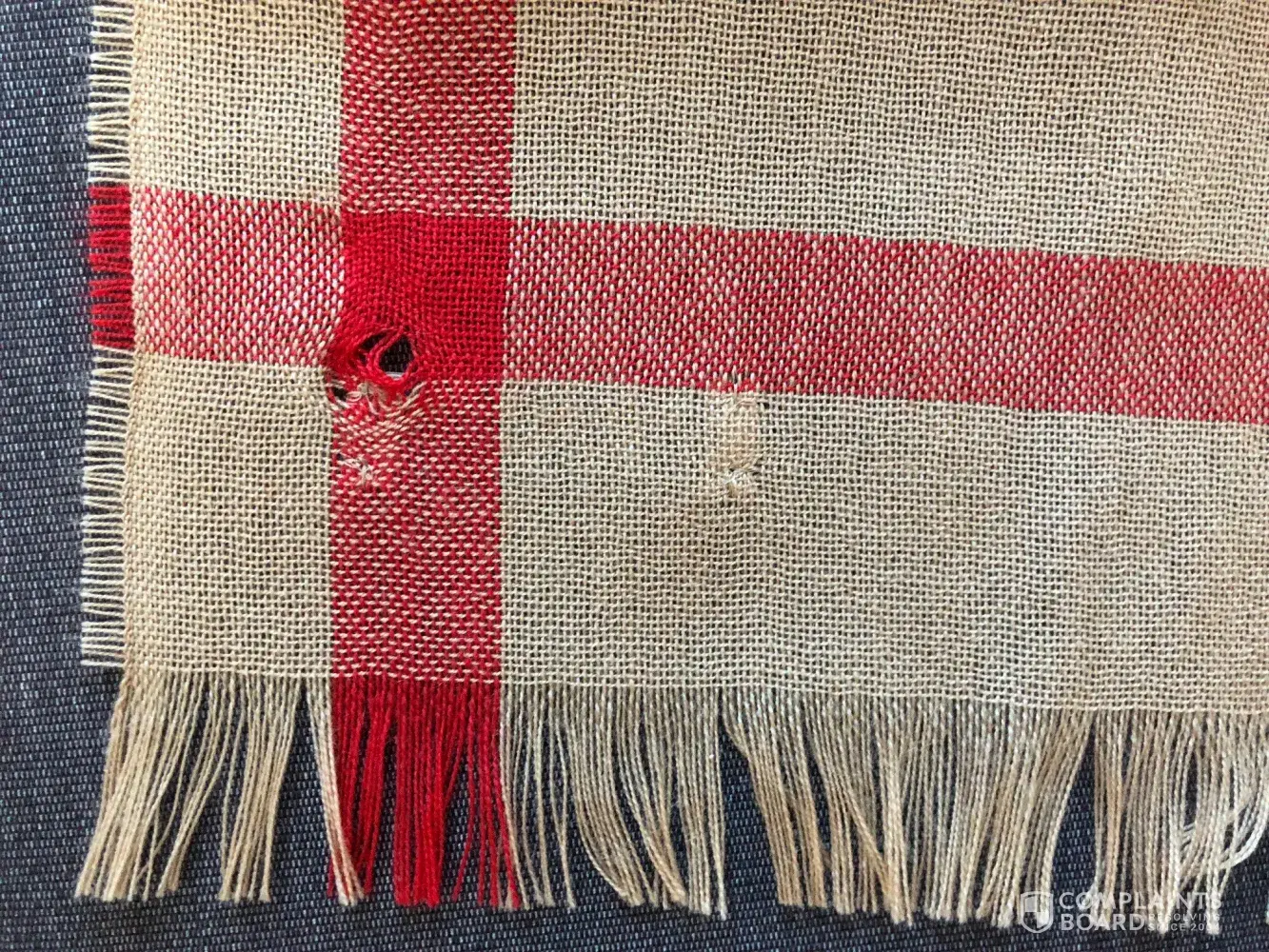 Hi - I am Noura Antoun and I am resident in Dubai, UAE. I bought a Burberry shawl from Galerie LaFayette Bld Haussman in Paris on Sunday 14 October 2018. I remember it was a display item and it was the last piece in the retail. However, when I returned back to Dubai, I realized that the item is defective. There's a scratch in the shawl next to the Burberry tag.
