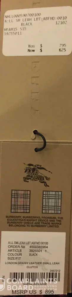 Do not buy from Burberry online. They do not inspect their item when they ship it to u. And then when u return it they ACCUSE you for the scratch the was already there when they sent it.