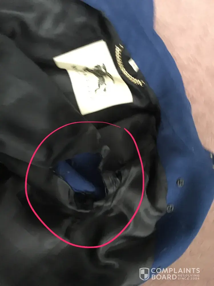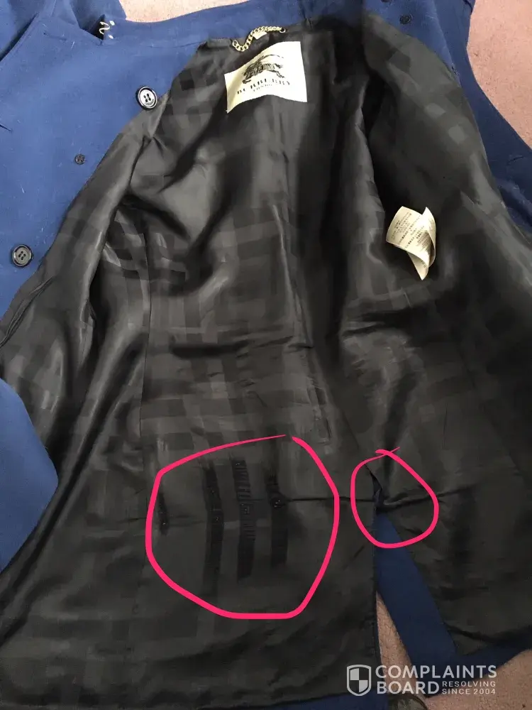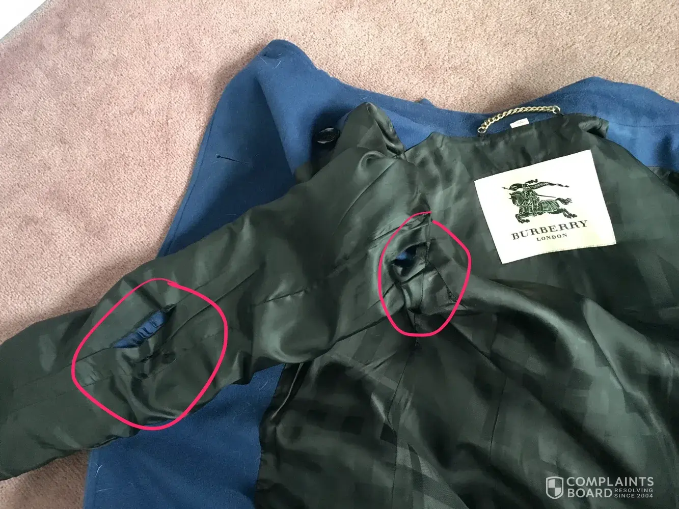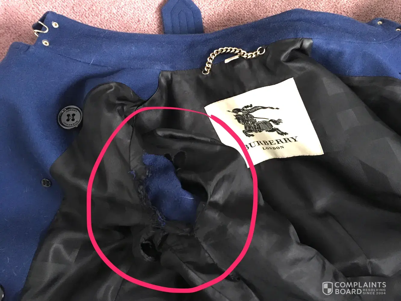 My husband bought me a wool Burberry coat for my birthday.I wore it very lightly for less than a year and the inner lining shredded on both shoulders, down the arms, at the back of the coat, and both pockets.
