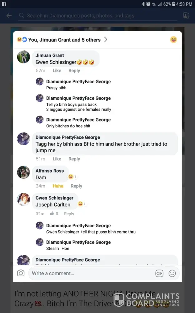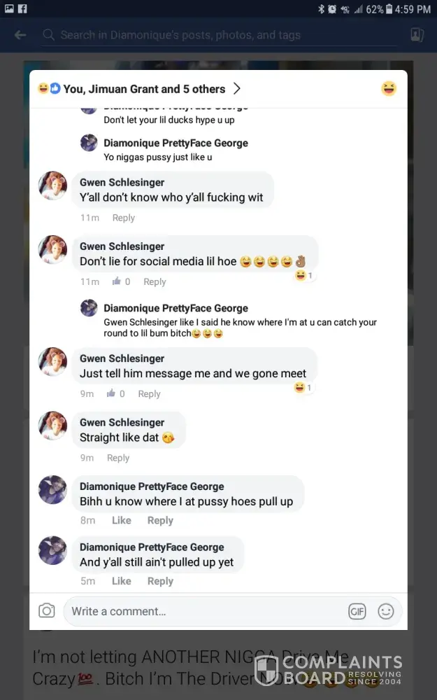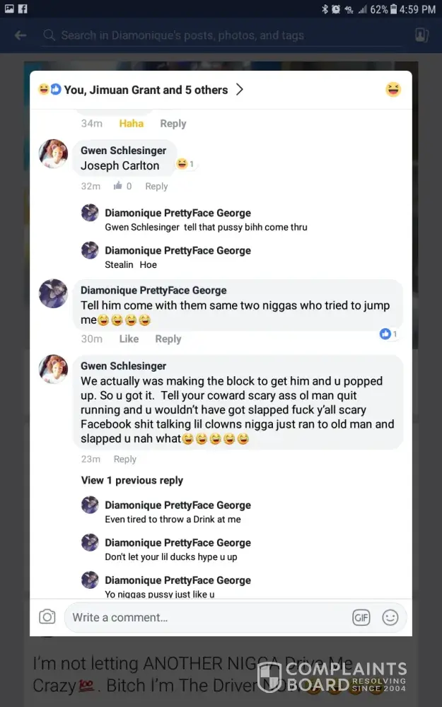 She proceeds to threaten me by calling her bf joseph carlton to come and fight me all this is while she's on the clock mind you
