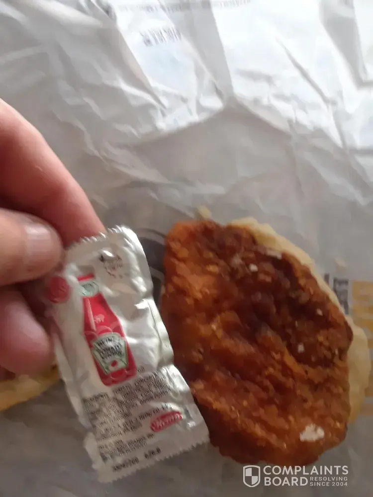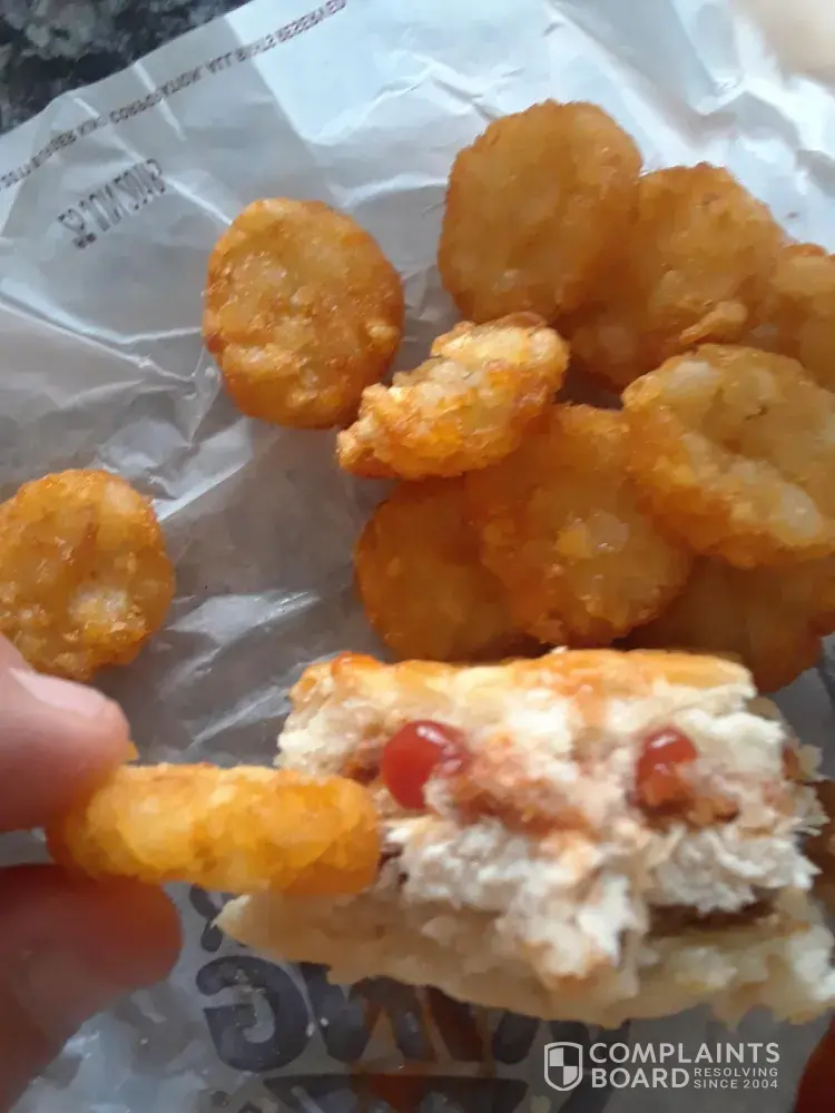 I stopped by Burger King #17617 on Wednesday, August 29, 2018, on my way to work. I purchased a sausage/egg/cheese croissant combo, and a chicken biscuit combo. When I got to work, and opened my chicken sandwich, I was shocked to find out that the chicken was paper thin. I took a picture of a hash brown in comparison to the thickness of the chicken and the hash brown was thicker than the chicken. Totally a waste of money. Had I discovered this at the restaurant, I'd ask for my money back and gone to Hardee's where I know the chicken biscuit is bigger and priced well.