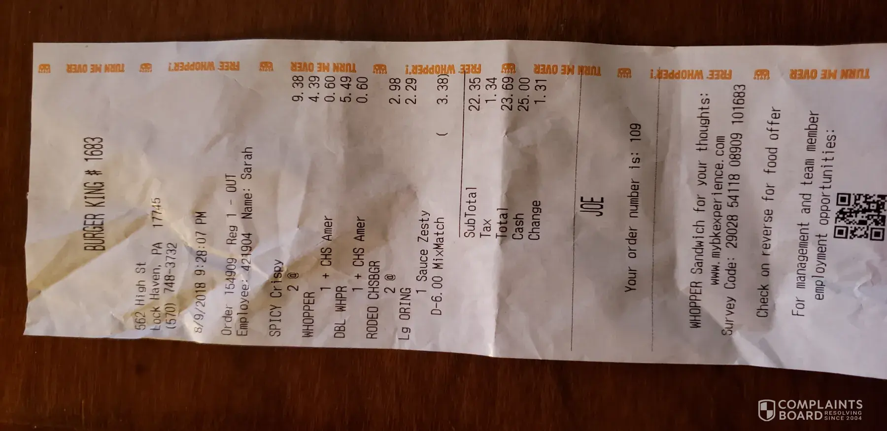 at my local BK they have 2/$6 whopper or chicken sandwiches. i ordered 2 whoppers and 2 chick sand. when i got home about 15 minutes afterward and checked the food i realized that they had charged me for 2/$6 chicken and also 1 single whopper and 1 single double whopper. i would have taken the food back but i would have spent a half hour driving total. so we ate the food but i am upset that the staff could not take an order correctly it should have costed me $6 not $4.39 + $5.49 for the whoppers . also they asked if i want sauce with my onion rings i said yes they never put it in the bag . My local BK was closed for a couple months for renovations. since they reopened i have been there 3 times, each of which they have gotten at least one thing if not more than one thing wrong with my order. the visit i made on 8/6/18 i ordered a lg onion ring and i got 6 small onion rings in it. also they forgot cheese on one whopper that night which i paid for. the visit i made on 8/9/18 was the above mentioned ordeal. i would appreciate to be compensated for the bad service and being over charged for messing up my order. i have pictures of my receipts for proof i was there. if i didn't have to drive as far to go back they would have gotten the food back in the first place.