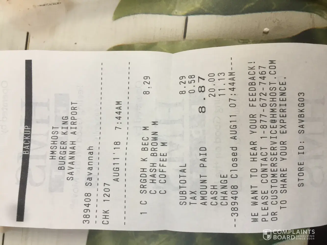 I visited the savannah airport location the menu said price was 7.19 plus tax but I was charged 8.29 plus tax? I asked why the cash said she did not know? Why price was different from the menu! I don't understand how price was different I got med coffee med tots as Advertise on the photo sandwich tots medium coffee $7.19 not $8.29. Please help me understand this price difference!