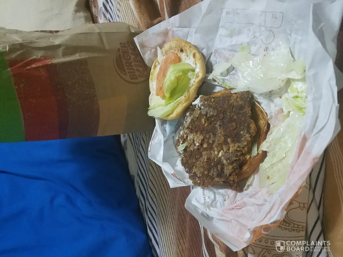 I stopped at burger king to get a 2 for 6. 1 chicken sandwhice and 1 whopper. The whopper was great the chicken sandwich was so burnt. The worst ever it looked like a burnt burger. I was so disappointed because, I was all the way home when I realized it wasn't any good. This is actually the 2nd time they did me wrong . Last year they charged my credit card twice and it was at night time like it was tonight . They need to make sure they hiring the right employees.