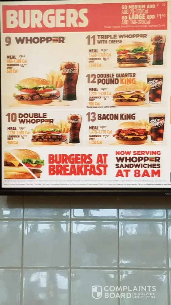 I called Burger King's Corporate Office and lodged a complaint which was dutifully taken. I really don't believe anyone will ever see the complaint or any action will ever be taken but I felt this situation had to be reported.
