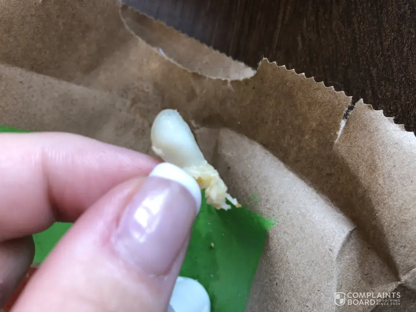 I bought a meal from chartwell burger king Hamilton and have enjoyed the 1st burger 2nd one ate half then felt something hard swallowed what i had in my mouth and my two front teeth have been chipped from a burger Nd have had no reply from them still waiting and they wanted me to bring the hard piece in i can't due to swallowing pliz left with​ a big chipped in my gum behind my two front bottom teeth it is a big deal bitting into a burger and your teeth just shattere from a meat Pattie .Krystal holtz