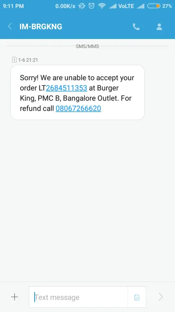 I have ordered from Burger King and my order got cancelled and the money is yet to be refunded. I even called on the number many times but no one is picking up.