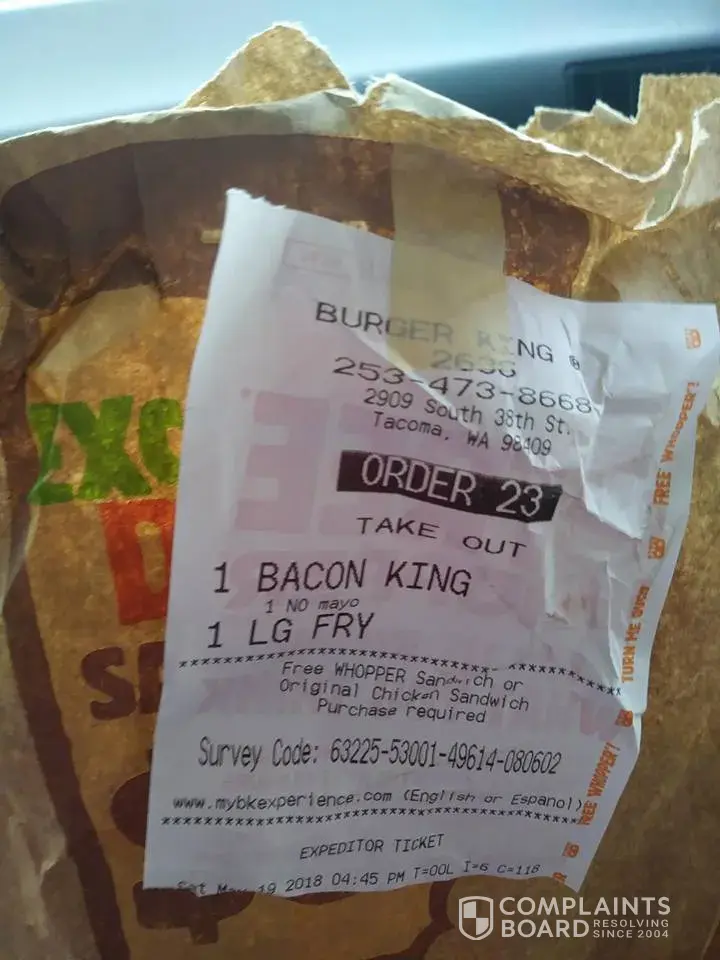 I Ordered a Bacon King No Mayo, I buy this Specific Burger for my Son as he is Deathyly Allergic to Onions, and the Bacon King Doesn't come with them, tonight the Burger I was given was NOT a Bacon King and had a huge Slice of Onion on it, I returned to the Store I purchased it and the Manager did have the Sandwich remade, and gave me a refund, But the Cashier that had taken the order had made comments that people are only complaining to get free food, I told the Manager that I just wanted the Burger I ordered, and to make sure there was No Onions or Mayo on it, The Manager chose to refund the money, and I Complained for the Fact My Son is like I said Deathly allergic, I would have had to rush him to the Hospital because of it, I stopped doing bussiness at the E72nd & Portland Ave Location for this very Reason, they insist on putting onions on the Bacon King.