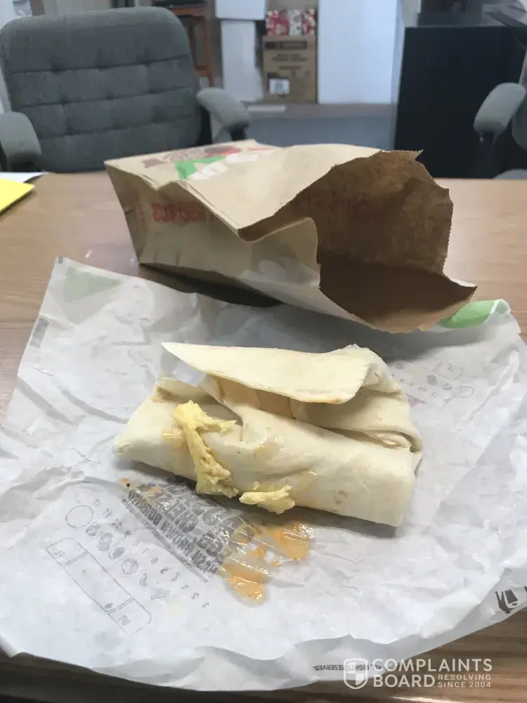 So this is why Burger King in Harrison AR is failing. Prime example. I got half a mind to post these photos to Facebook. But I see that sort of thing often and find it annoying. I don't know how they expect me to eat this poorly prepared burrito. It couldn't have been a more apathetic attempt at a meal. Oh and the hair that you can clearly see in the photo. That's not one of mine as I posses no hair atop my head. This is ridiculous in the worst way.