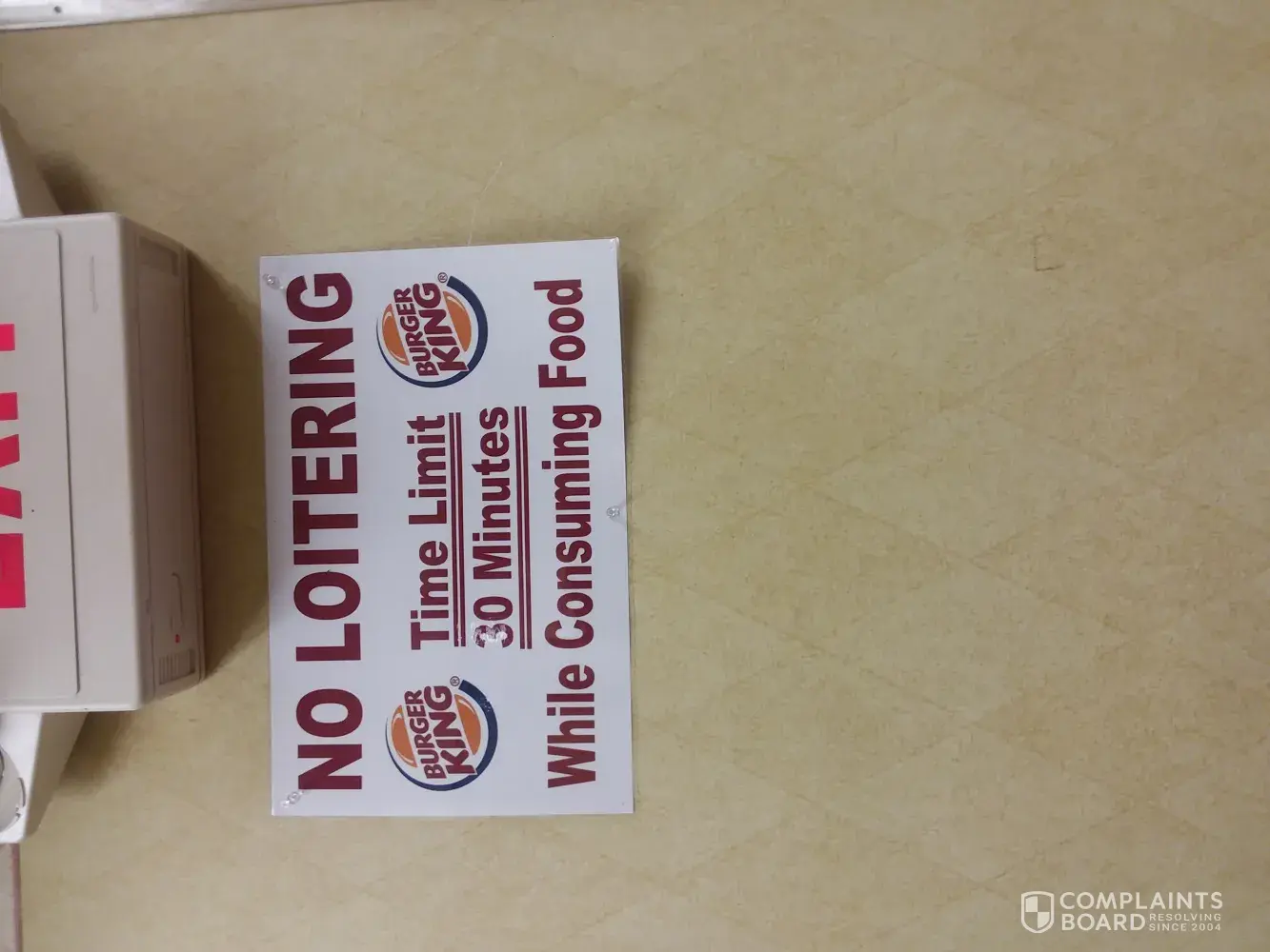 I had gone to Burger King on 11/7/2017 at approximately 7:30 pm. This was the location on Social Street in Woonsocket, RI, 02895. I had enough time to eat one burger and a big black female came to my table and told me that I had to leave because I could only have 30 minutes to consume my meal?! I was forced to throw out the rest of my food I had purchased. Needless to say I was very dissatisfied. I left, I had to pick up a friend from class a few buildings away. My friend had asked me to get some Burger King. She wanted to go in so unwillingly I went in with her. There was one older lady, maybe about 50 years old. She was taking all the orders, cleaning different areas of the restaurant, basically it seemed that she was the only one working! The manager had blonde hair, I would say she was in her 30's. My friend had gotten a small plastic cup and put some of the soda that I had purchased and filled into the small plastic cup. The same big black female started yelling from behind the counter to my friend that she needed to dump the soda out. I purchased this soda and see no reason why I could not give her some of my soda. She was told she couldn't have any of my soda! She could only have water in the small plastic cup? This employee was just leaning on the counter chatting with a friend who was leaning on the counter without shoes on! HER name was Shante. The managers name was Marissa. This manager NEVER said anything to the employee. She was just standing there. The older lady wore glasses but I didn't catch her name. She was very pleasant. As we were eating we were being watched and timed? Shante was watching and timing us and yelling at us from behind the counter! She kept arguing with my friend because I gave my friend some of my soda I had purchased? WHAT A MISERABLE, PARTIAL MEAL FOR ME! I work at a casual, from scratch kitchen, and I have never been to any food establishment and been treated the way we were treated with the manager Marissa standing right there. If that happened in my establishment those employees would have been terminated on the spot. I was respectful and polite and was still getting an attitude from Shante while the manager, Marissa stood right there and NEVER said a word. So explain to me how an employee can argue with a customer while the customer is sitting down eating while her friends are standing at the counter one with no shoes on her feet, (disgusting), the board of Health would love to hear that. You actually pay Shante to do nothing but harass customers, while manager stands by and does nothing