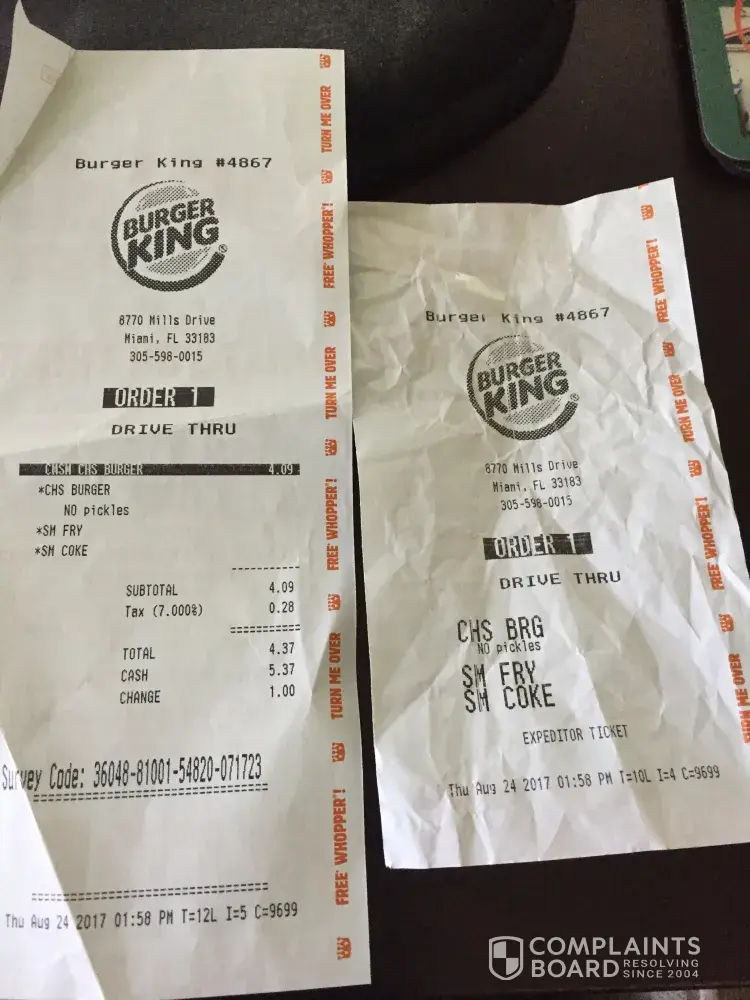 I went to the Burger King located at 8770 Mills Drive, Miami, FL (#4867) yesterday through the drive thru. I originally ordered a cheeseburger and small fry. The young lady that took my order offered a combo and I accepted. As I waited in the drive thru line, I see an ad on the window for two cheeseburgers, one small fry, and a small soda for $3.49. When I pulled up to the window, I asked the young lady if I could get that offer because I was paying more for less food and she did not offer it to me when she offered the combo. She did offer two cookies for a $1 but failed to mention that they had that offer. She told me there was nothing she could do and that if I wanted that offer, I would have to go through the drive through line again. She did not make any effort to assist me. I even mentioned to her that I was paying more for less. She apologized and told me I would have to make the line again if I wanted another cheeseburger. Every time I have visited this Burger King the service has been nothing more than ordinary or bad. I intentionally avoid this Burger King for that reason. I was hungry yesterday and it was my only alternative for fast food within the time frame I had for lunch. I honestly felt that I was taken advantage of and nothing was done to resolve the issue and zero effort was made to correct the mistake she made. She completely did not care when I voiced my complaint and concern. I was polite and respectful. She could have at least asked the manager next to her or given me another cheeseburger for the amount of money that I paid. My total check was $4.37 when it could have been $3.70 with more food. Its the principle that bothers me the most. It was dishonest on her behalf. I would like a refund and I recommend the management at this location get better training so that they can better train their staff. This is the first time I ever file a formal complaint with any restaurant but I have had too many incidents in the past with this location.