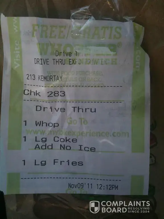 Read full complaint and 1 commentdrive thru 1 free coupon per car, not per person