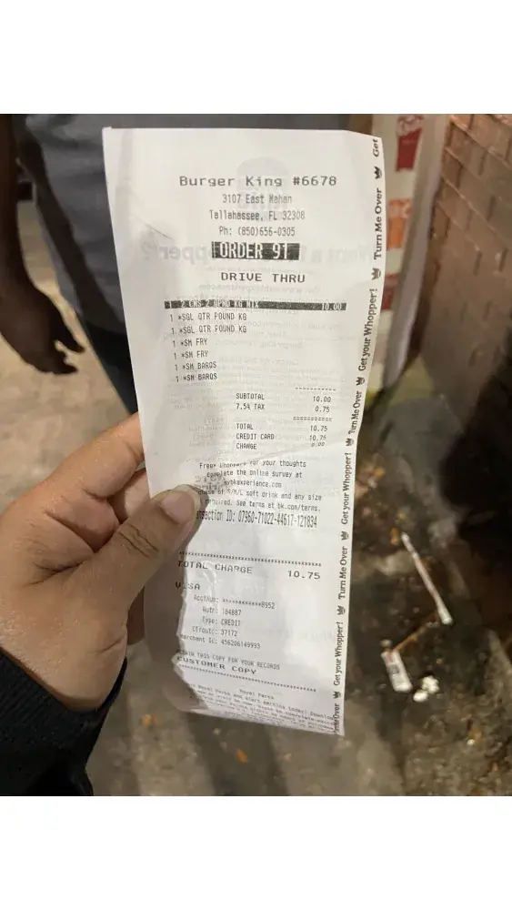 Yes my husband and I went to Burger King in Toccoa Ga about 4:21 pm today and ordered 2 $5.00 whopper jr meals with the nuggets fries and drinks. My food was terrible. I always request that my food is cooked fresh. Most of the employees or whomever is working get an attitude bc i request my food to be cooked fresh. I dont want any food that has been left over from lunch time. My whopper jrs were dry and the buns were so hard you could through them through a window and break it out. Burger King is my all time favorite restaraunt. And the way they do things here at this restaraunt is ridiculous. I would appreciate if you could resolve this issue for me in a timely matter. Thank you