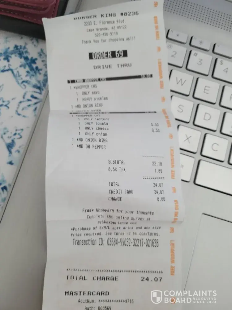 Nice BK. Screw up our order and then don't allow us in the survey to complain.