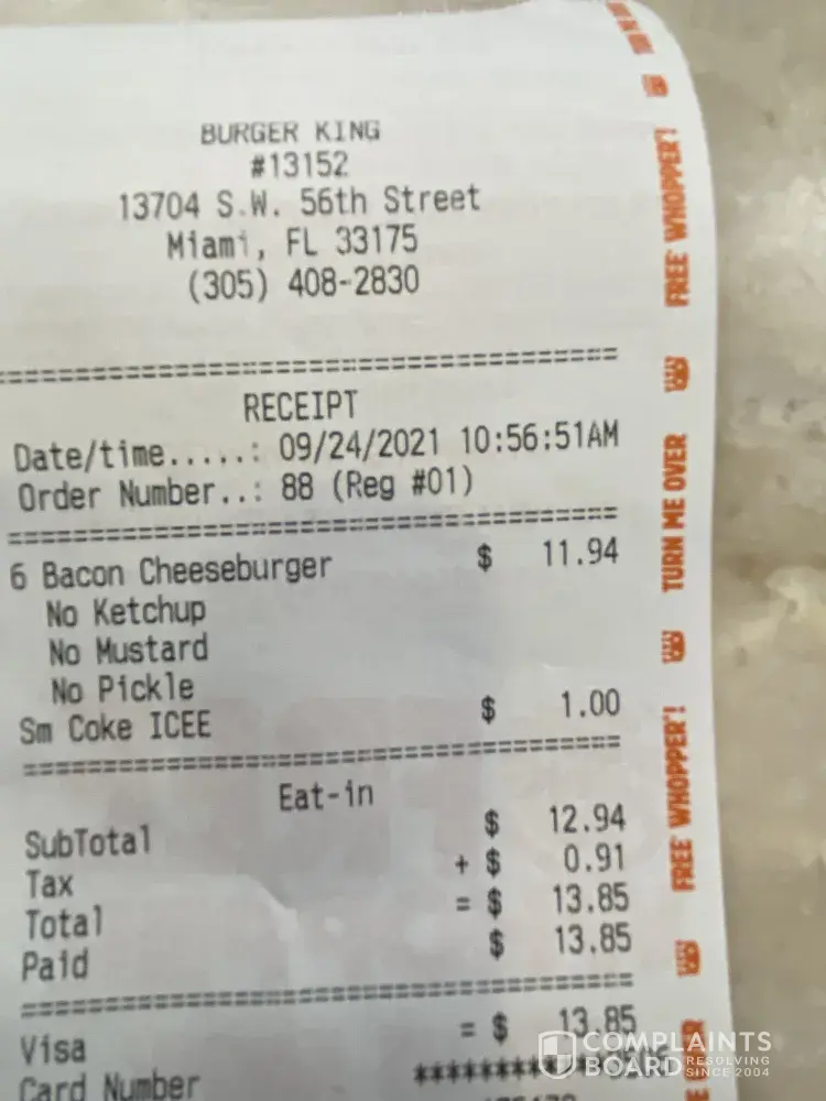 Read full complaintprice of cheese on a bk whopper, and attitude of cashier