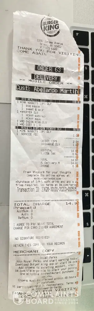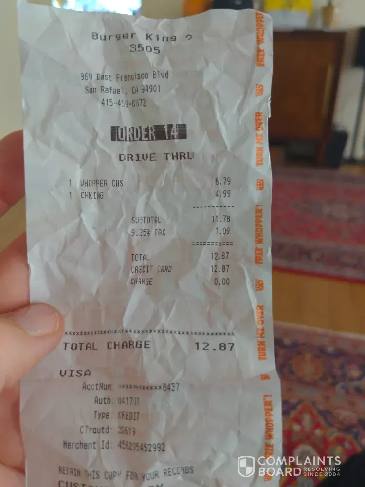 Read full complaint and 5 commentsCan do survey to get free whopper