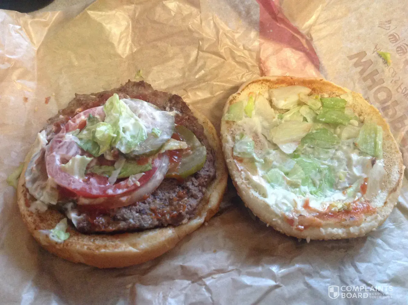 Was made wrong when I told them them the cheeseburger was supposed to be cheese only they said they are I had to literally open the sandwich and prove to them they wasn't and my whopper had very little on it 1 outer ring of onion 1 pickle a quarter size of lettuce