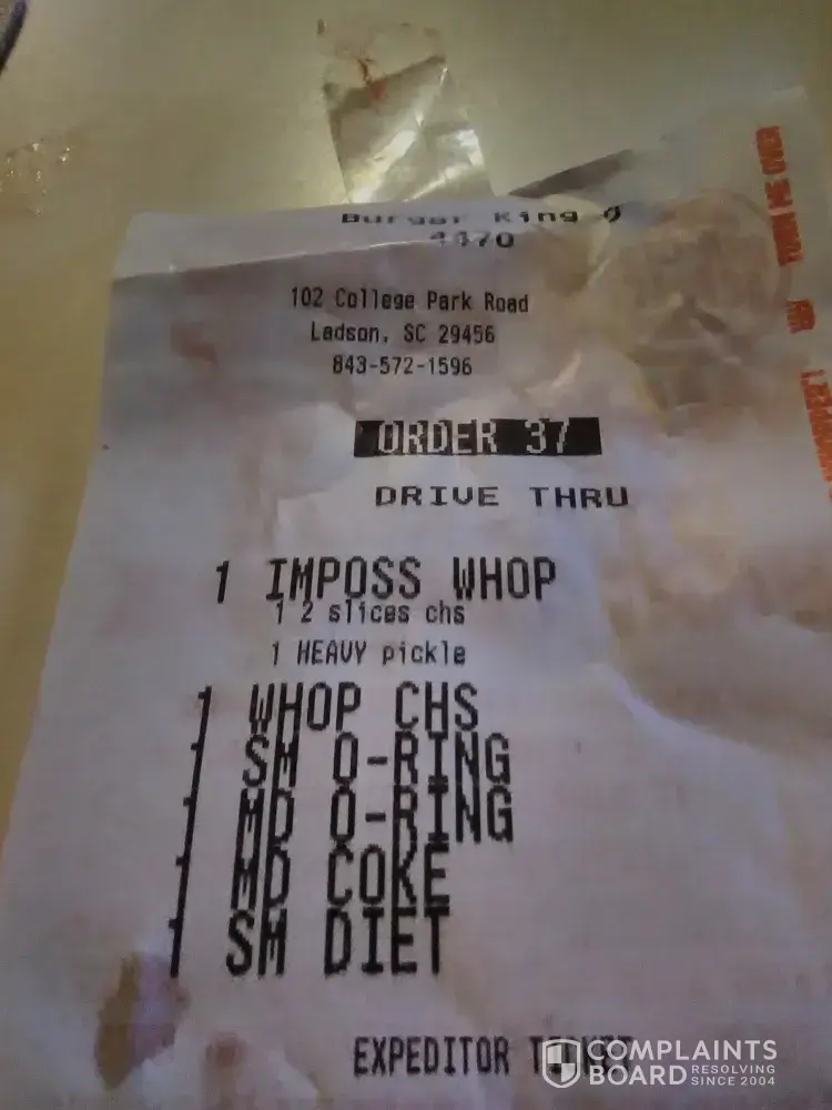 Read full complaintGetting a free hamburger