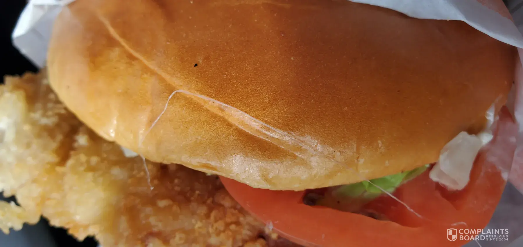 Mu husband and I went through drive through saturday dec 21, 2019. We drove many miles as I opened my chicken sandwich there is a big hair/plastic in the sandwich hanging out. We took pictures then had to drive all the way back. The manager was unavailable so a crew member looked at sandwich and pictures then took the sandwich and gave another sandwich,? I...