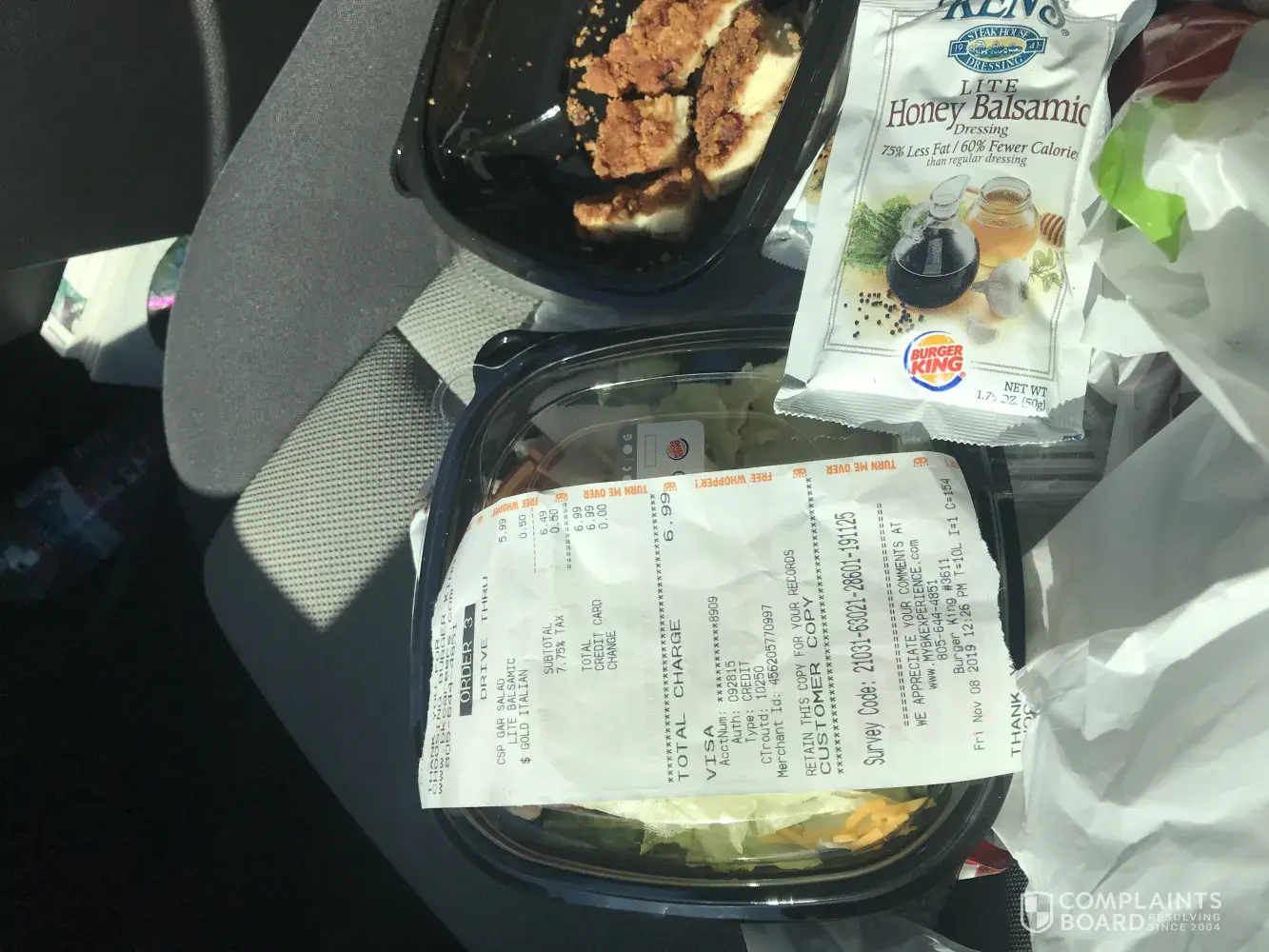 When I ordered my lunch today at Burger King corner of Telegraph and Victoria in Ventura, CA. I was told that my extra dressing cost more. No problem I said. My total was $6.99. She took my $ then told me we only have this salad so I will put chicken on the side. I didn't get to see it up close but noticed it looked awfully small so I said, "May I please have more lettuce". She said yes went to the back and came back and handed me the bag and I said thank you to her and she did not reply. Should have taken that as a sign. I parked my car and looked inside my bag and could not believe it was a side salad and a chicken breast on the side. I quickly went back and told her this is not what I ordered. This is not worth $6.99. She said yes the chicken breast is $5.00. I said well you lied to me. I asked for more lettuce and you did not give it to me. To which she just continued to repeat that the chicken was worth $5 by itself. I said please refund me my money which she did. I am very, very upset about this service. Please have someone follow up with the Manager and have someone from your office get back to me.