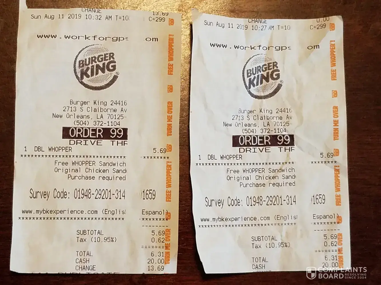 For the third time yesterday, this Burger King messed up my order in drive through. What makes it worse is they keep their phone off the hook so you can't call and complain. Try it [protected]. I ordered a Whopper with cheese meal cut in half and a taco. I got the taco, but received a sandwich with two beef patties, mayo, pickles, and onions. There were...