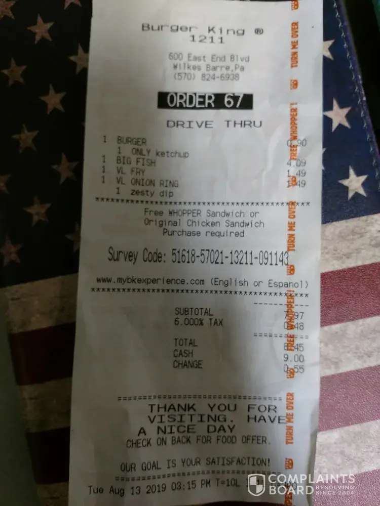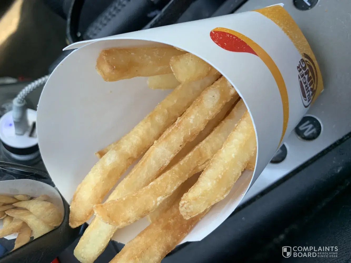 I went to Burger King today on my lunch much break and only had a couple dollars so I decided to try your tacos. Omg! Awful! I couldn't even eat them. Tasted like the taco shell had been a week old so hard on outer portion I couldn't bite it and the filling was soggy and gross like they had been sitting under heat lamp for hours! Definitely not as advertised, no taste at all and inedible I also got an order of fries, see attached photo, seriously not worth my 2.39 for a couple fries. See photo! I did use the drive thru so was unaware until I got back to work!And they tasted old and cold. The only thing I managed to enjoy was my coke! I did not get a receipt at drive thru! I was there around 3:10pm on 8/12/19. The girl at the window was very nice and polite but your food was terrible! Very very disgusted.