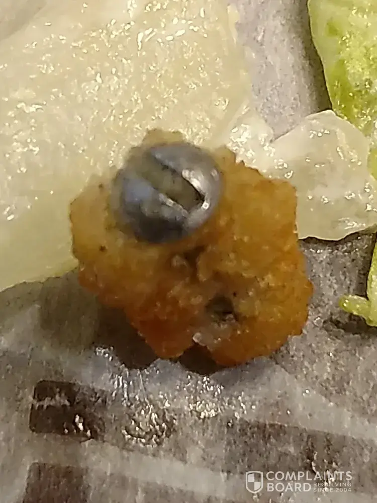 Drive thru, terrible service. Waited in the parking lot for them to bring my order to me. I realize we probably waited because of the fish sandwich. I was almost at the point of going in to get the food, but defeats the purpose of using the drive thru. I took the food home to find 3 onion rings in a value onion ring. Even worse a screw!!! With breading on...