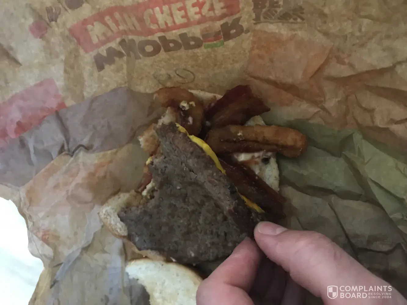 Hinckley Minnesota Burger King I recently stopped there at 5:30 in the afternoon there were six customers total the two in front of us had to wait like 15 minutes before they walked out the door my brother and I waited another seven minutes I ordered two Whoppers one Whopper was with bacon and cheese the other Whopper was just without pickle what we got 20 minutes later was one Whopper that was done right the other Whopper was served with no meat on it then when I brought it up there and complain they said they would have another one wait another 15 minutes never did get my Whopper they never put it down and I never even bothered with me again after that so I complain to the manager the manager seemed a little interested in what was going on and just said while give you a refund and let it go at that not for a few people that were in that store you would think you would get faster better service instead of standing around waiting for 15 minutes to get waited on and then end up with crappy service garbage food and they got to do something about their quality to because my brother and it up getting diarrhea the next morning and was sick all day long