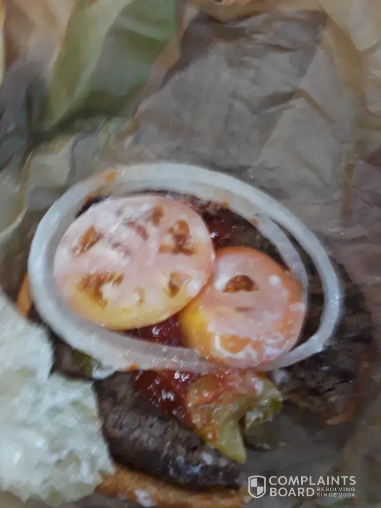 The tacos were small, hard as a rock, 1 square inch of lettuce, and apparently leftovers from the day before. But the worst part of the order was my Whopper. I love Whoppers but not this one! Barely anything on it!!! Very little lettuce, onion, and 2 miserable little tomatoes (if you can call them that). I had never been disappointed before by the Whopper but this experience turned me off. Forever!!! Just nasty!!!