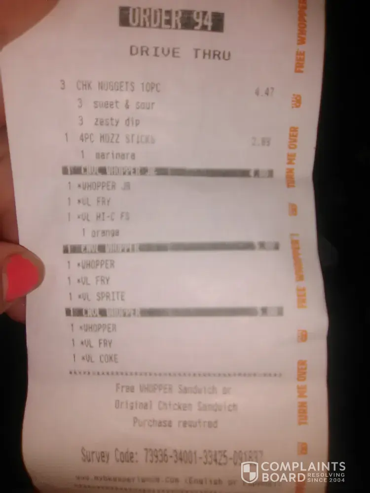 I stopped in for my anticipated mouth watering double whopper with cheese. Expecting the usual quality and ketchup, mayo, lettuce, tomato and onion. Instead when I got back on the interstate and started eating with anticipation, I discovered my whopper with ketchup, MUSTARD, onions and pickles. Not what I was wanting. Really, where was my much anticipated burger?