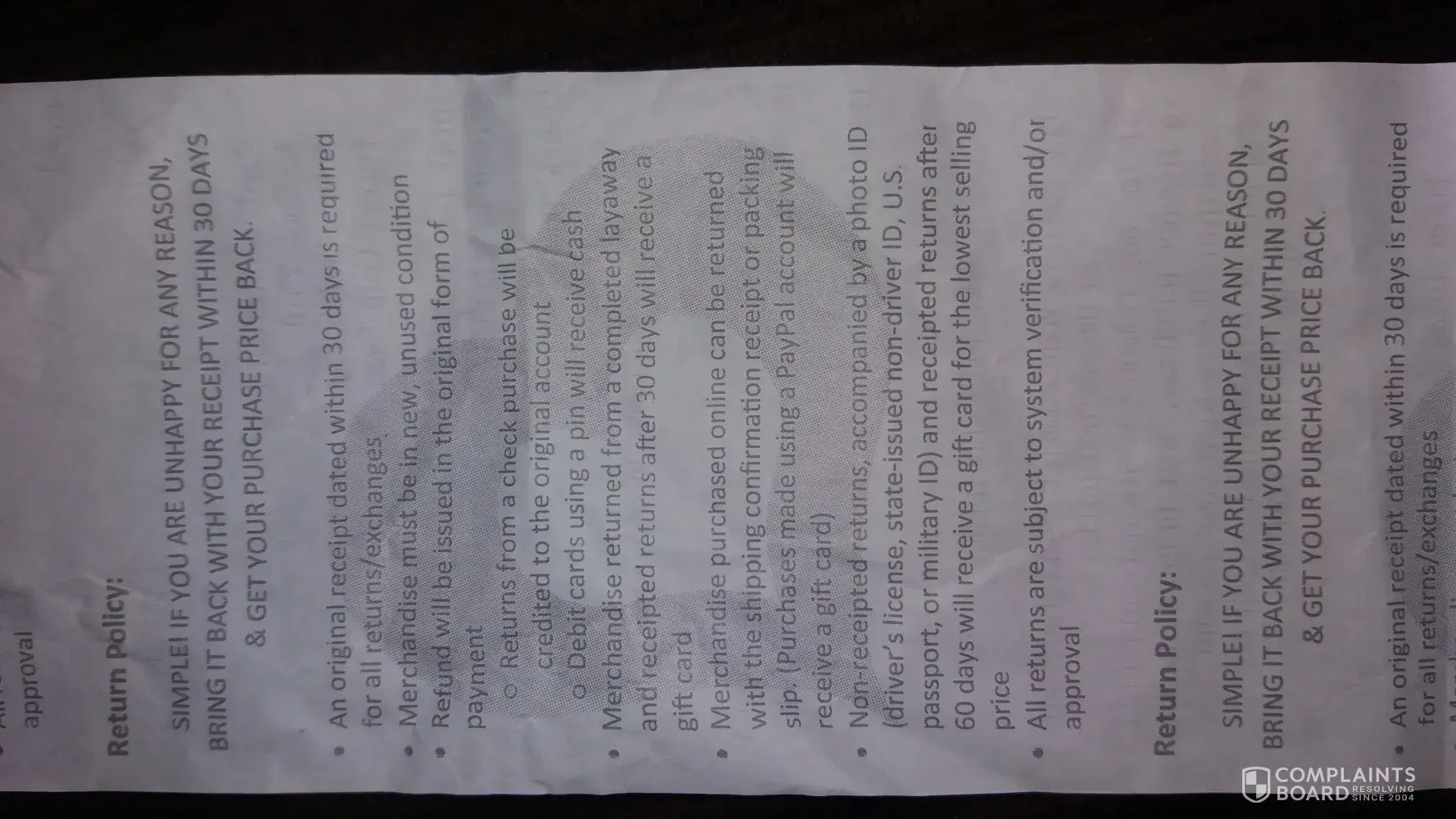 On 6/24/2017 this afternoon I went into the store to return a hair clip that was broken. The cashier told me that I could not return it because 1) it was not in its original form and 2.) I had no purchase barcode. I spoke to a supervisor who told me same after I asked her to show me on the receipt where that policy reads. She called the store manager who gave me the name Akina who showed me the sentence on the return policy "All returns are subject to system verification and/or approval". She denied my request for return also stating that even thought I have my receipt and I paid with my debit card there was still no proof that I purchased the clip there. She took the hair clip snapped it back in place and said "see there's nothing wrong with it and smirked" I left the store without my refund..As a consumer I cannot wear a hair clip that will snap out at any time. I put it back into my hair and I snapped out again. I would like my money back for this particular hair clip. No wear on the return policy states that I need to have the purchase barcode with me. In bold print your policy states" Simple ! if you are unhappy for any reason bring it back with your receipt within 30 days & get your purchase price back" However, it was not as simple for me. Thanking you in advance.