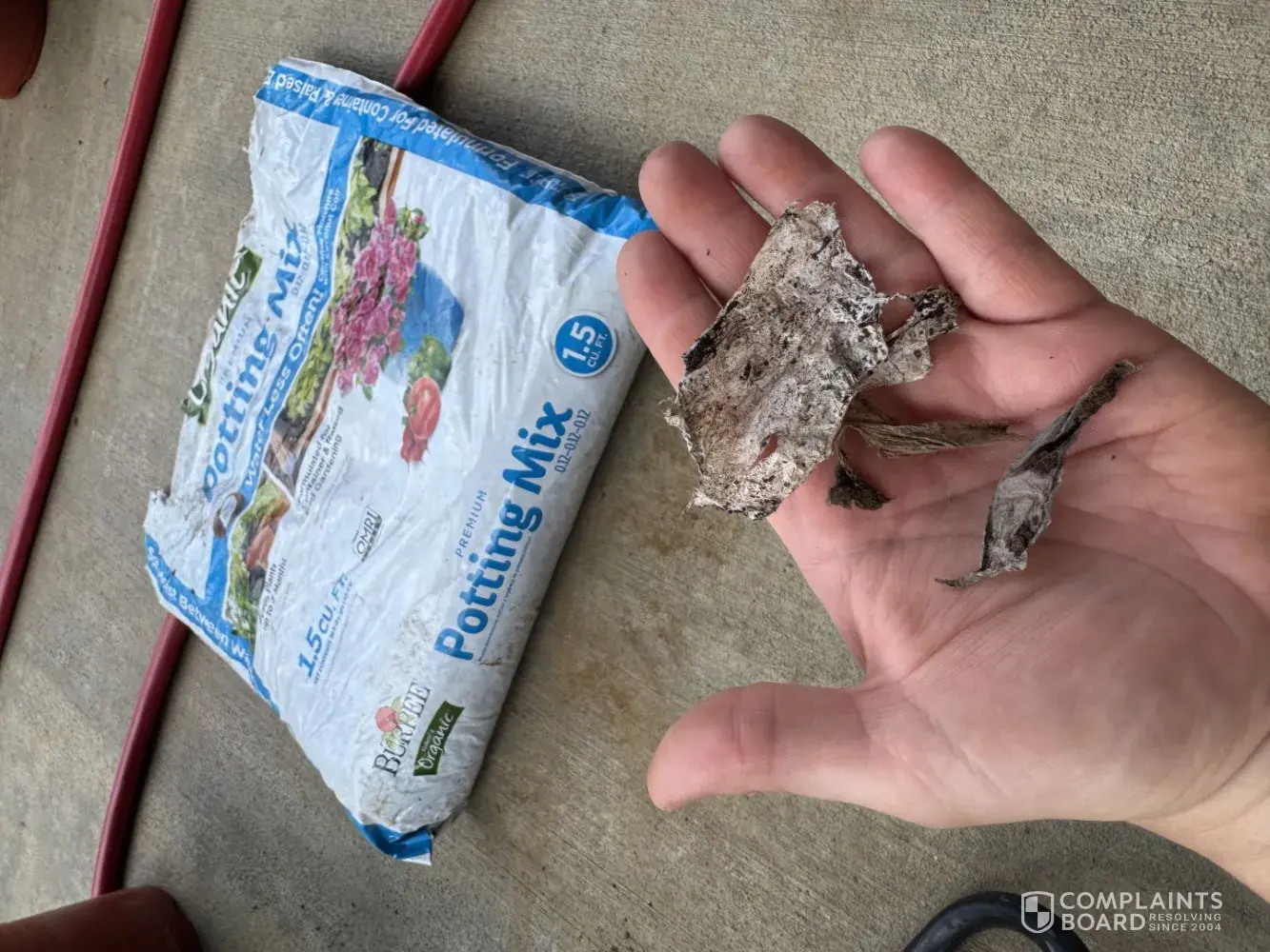 I purchased several bags of Burpee Organic Potting Soil to pot my vegetable seedlings. I am almost completely finished with all my planting and I am finding bits of plastic bags throughout the potting soil. I am extremely upset and disappointed with this product. I purchased this brand with the expectation of it being organic because it is labeled as “Organic.†I am planting my vegetables with this and under no circumstances did I want my vegetables plants to be planted with plastics. This is a mislabeling of the product, a complete waste of my time and compromised all of my plants.