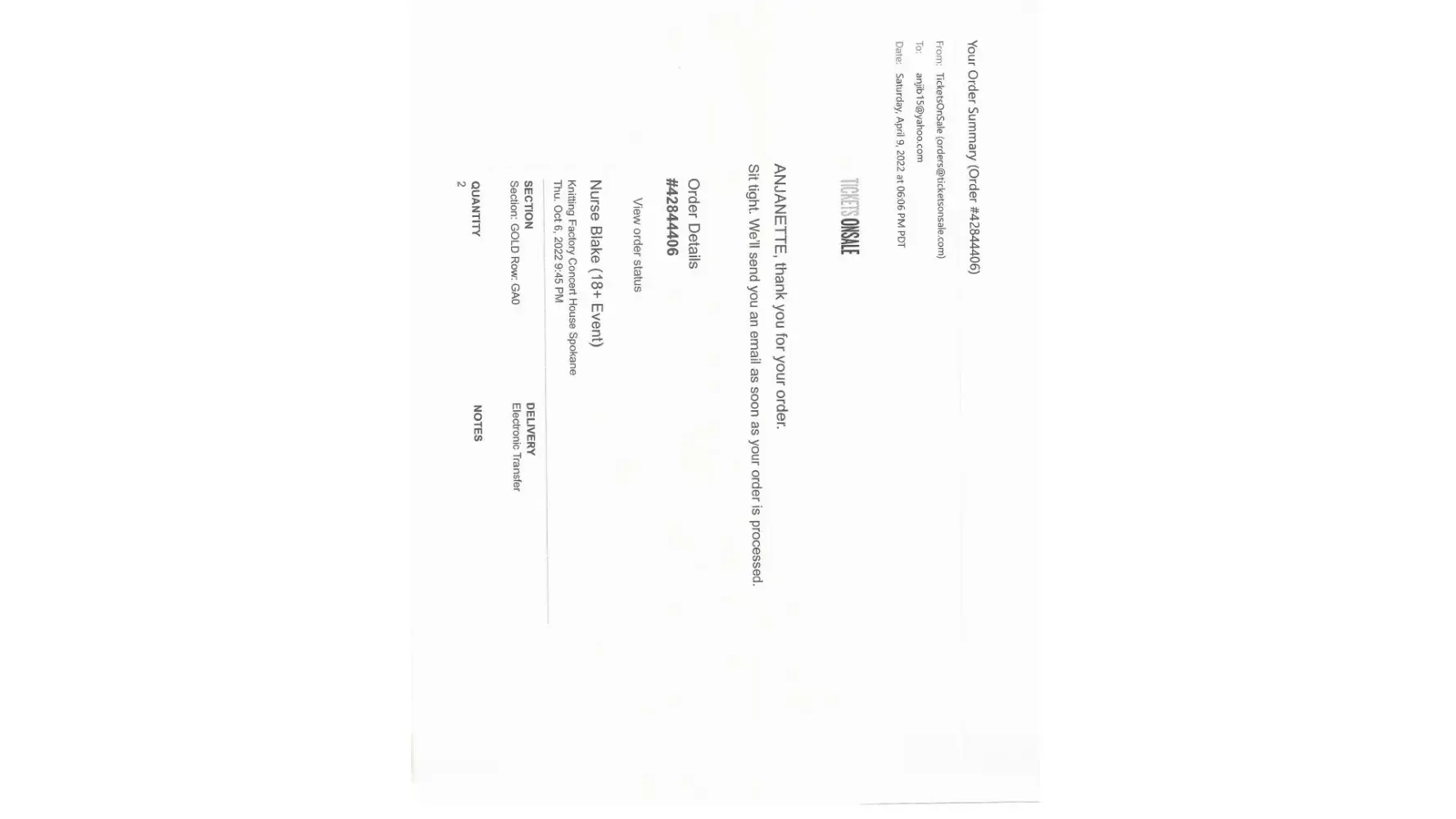 I purchase tickets for a nurse comedy show in spokane on April 9th 2022 from Tickets On Sale. I was charged 310.18 for this. I had went throught the Nurse Blake site to buy these tickets so I assumed this was the price and didn't think of any scamming going on. I called on Sept 13 at 1157am to find out why I hadn't gotten my tickets yet. I was told that...