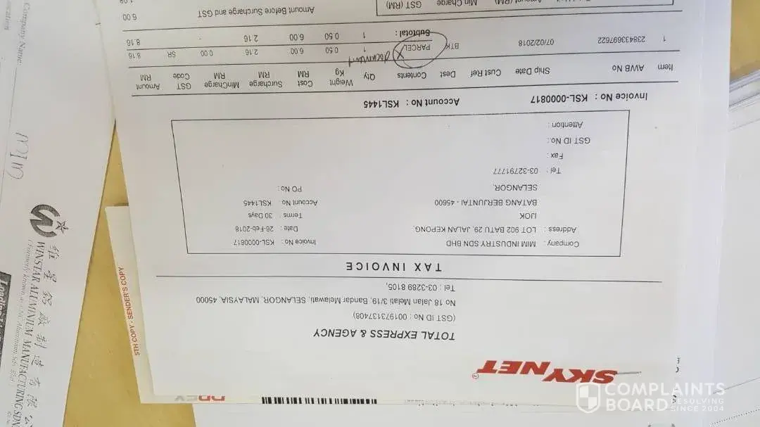 Skynet Malaysia (Total Express & Agency) - complaint billing and services