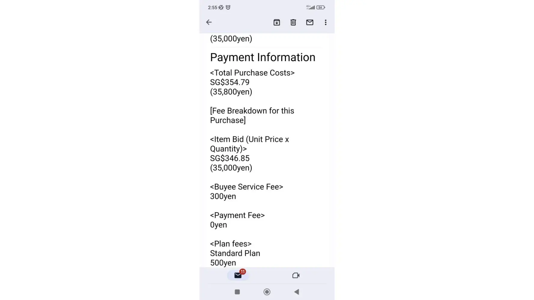 Buyee is an online shopping website that offers a wide range of products at competitive prices. I had recently made a purchase of three identical items which costed me about $12 each. However, upon checkout, I was shocked to see that the seller had added three additional fees to the item cost, which totaled to about $10. These fees included a Buyee Service Fee of 300yen, a Payment Fee of 200yen, and Plan Fees of 500yen.