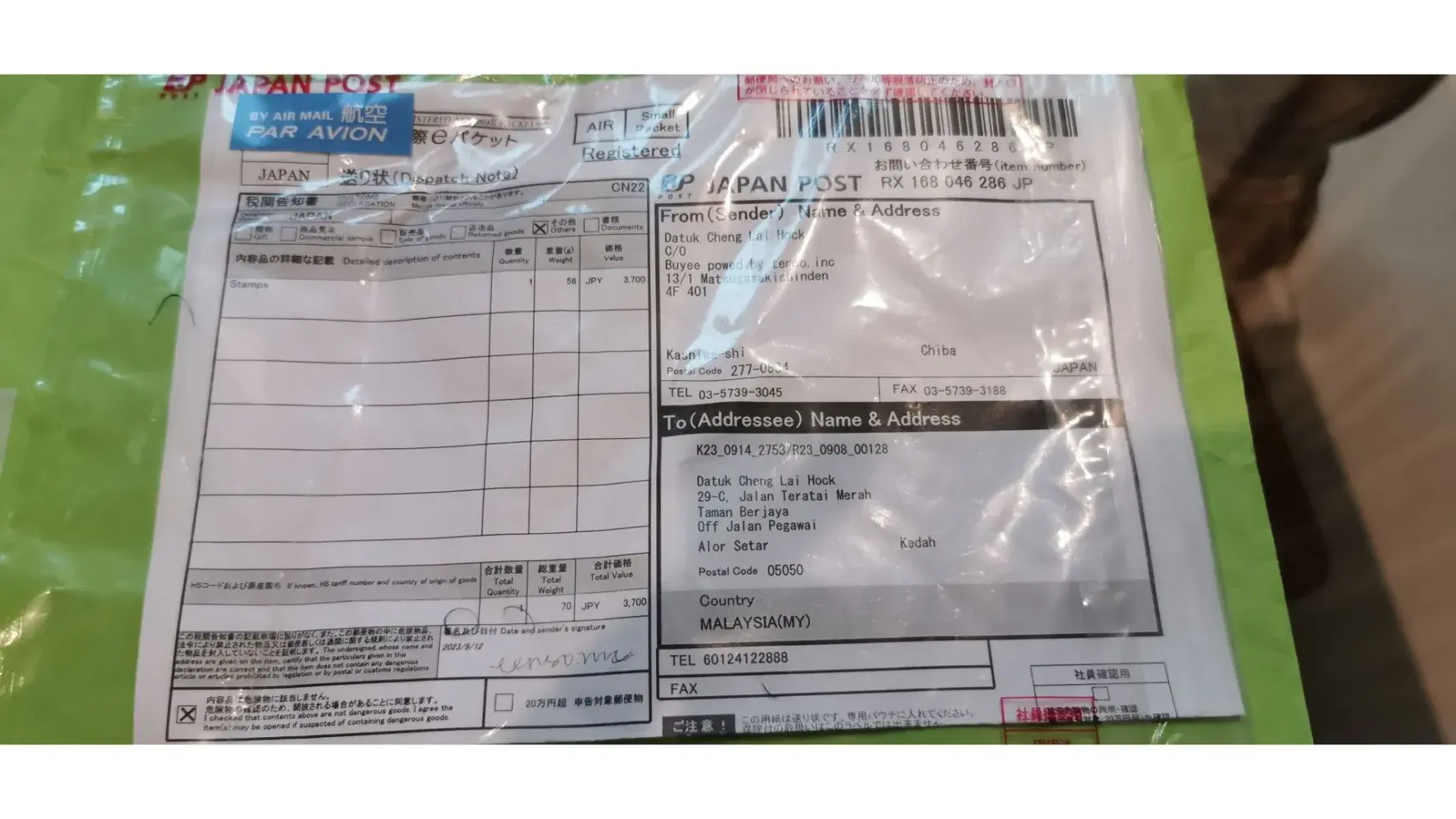 Shipping fee: RM188.26