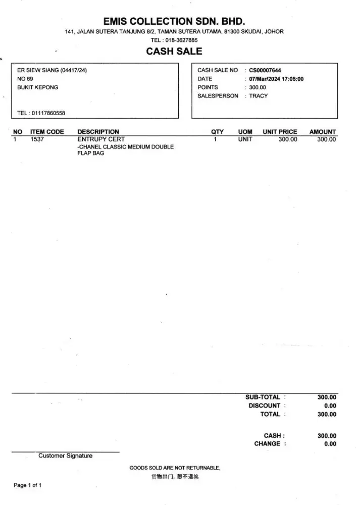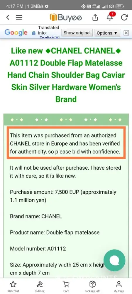 Seller claimed that the item is verified authentic item. After received the item, I sent for authenticity verification, the result shown that the item is fake item. Fake receipt is provided. Email to buyee but no feedback and report to buyee tenso but no actions taken. Buyee not allow buyer to claim, return or refund even its a unauthentic item.