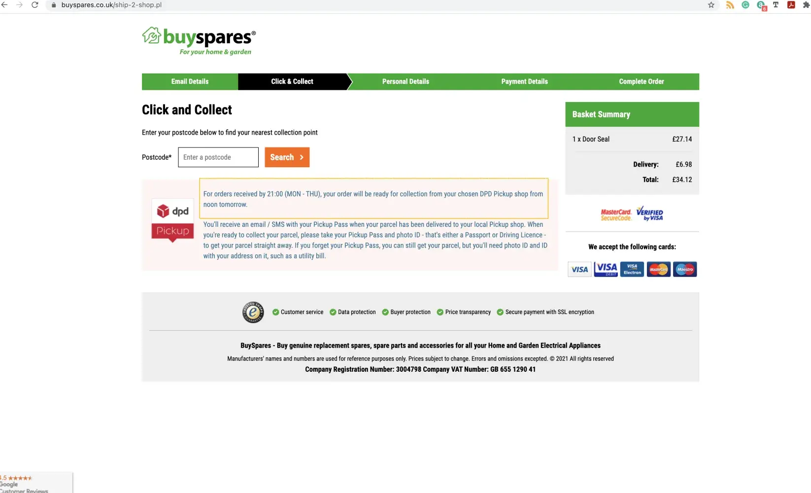 BuySpares online purchase of a spare part