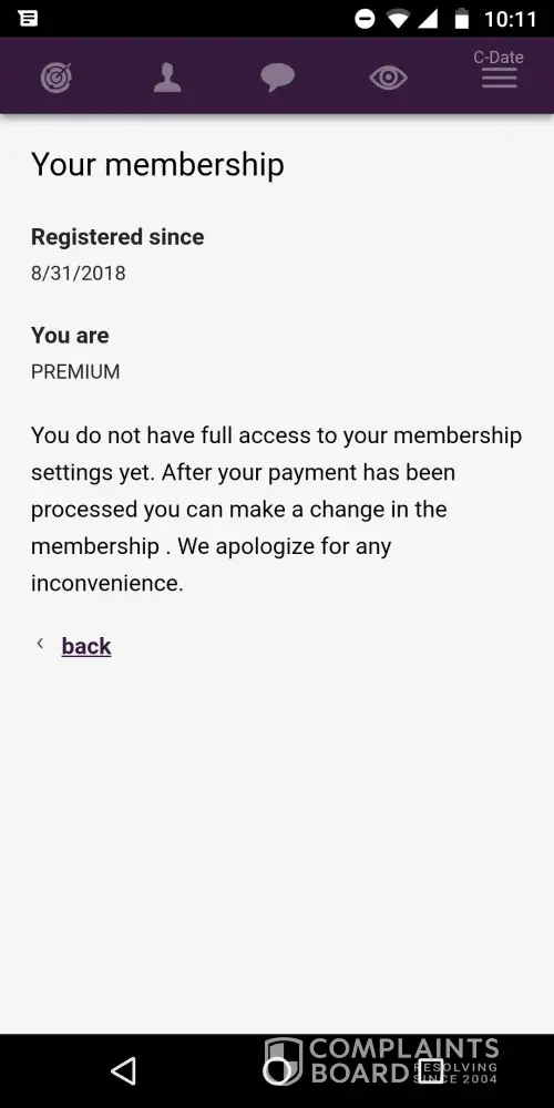 Dear Chocofun, Please contact us at cs @ c-date . com from your registered email address, put https://www.complaintsboard.com in the subject header. We will check your profile as soon as possible. On behalf of the Interdate Customer service Team.