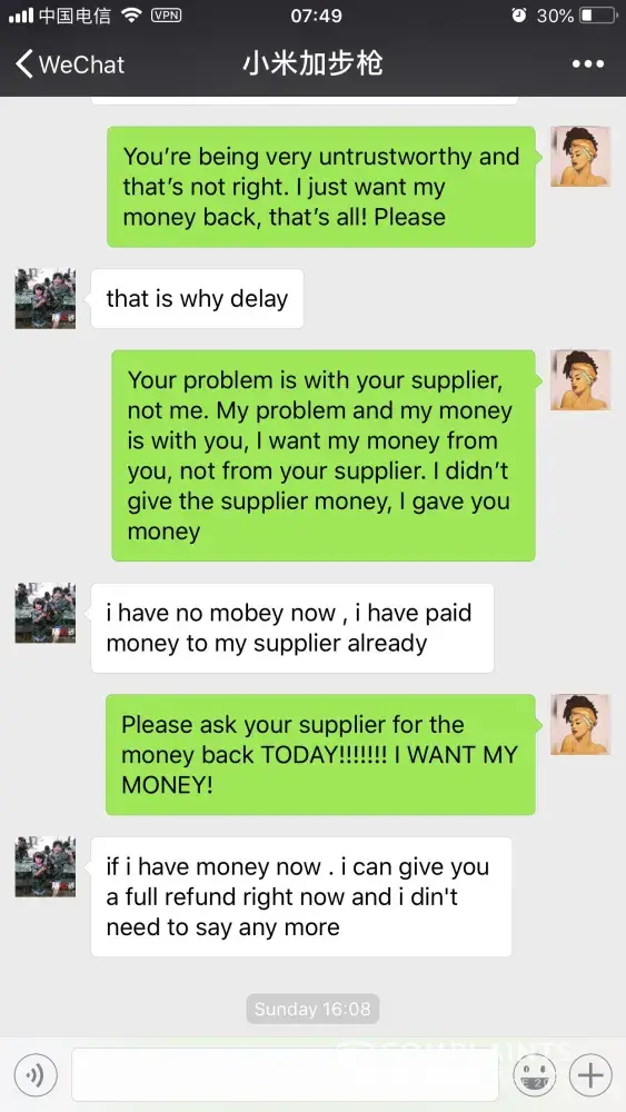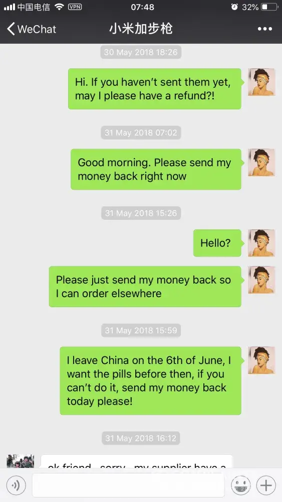 I ordered Xiyouji qingzhi from this supplier in China. Because I am in China, I decided to pay via WeChat, a total of 328Â¥ was paid to the supplier. The supplier then said he would need 3 days to get the package from his supplier then send it straight to me. I sent the money on the 22nd of May, after realizing it was taking far too long I asked for a refund, supplier refused and insisted on sending me the package that I still have not received even today. I've asked supplier for my money back time and time again to no avail. Supplier is a scammer! Would not deliver package or refund money!