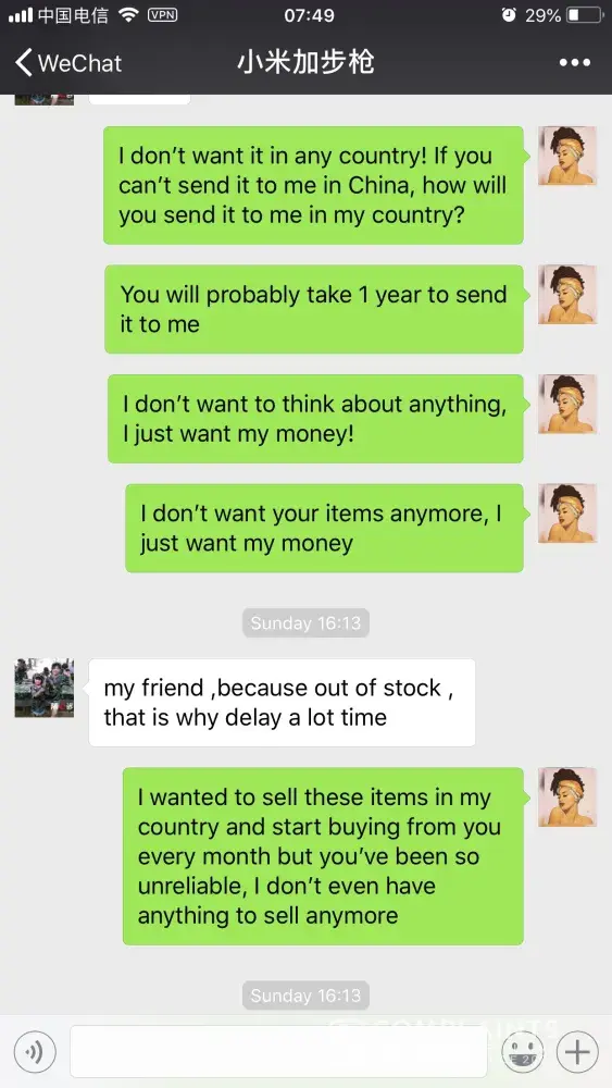I agree at least u got something, I paid for an iPad and he told me that it was A chinese version, well when it was time for delivery he told me that they stop making them to many people was complaining about it so he tried to get me to pay 100 more for an American version I told him no, refund my money and that's all he told me that he would refund it back on 3/30/11 here it is and still no contact or money. I learned my lesson, never again.