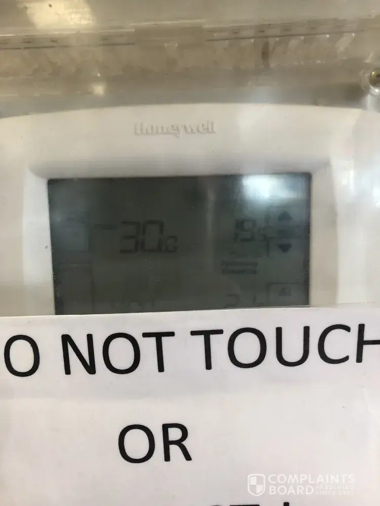 I am complaining on behalf of the employees that work at the lacombe Tim Horton's. Over the past summer months my coworkers and I have been working in temperatures that get up to 33°c. We have talked to our managers about getting the air conditioner fixed multiple times and nothing seems to be getting done about it. And on top of that we usually cannot get a drink of water in the break room without getting yelled at by a supervisor. These work conditions are causing heat stress, heat stroke, dizziness etc. I'm trying to write this in order for change to happen in our work place and trying to prevent a serious injury from happening. I hope something gets done about this matter. I've attached a photo below of our thermostat for proof of our working conditions.