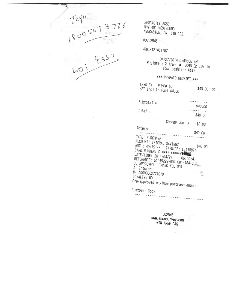 On Sunday at 6:35am I pulled up at the NewCastle HWY 4001 Westbound Gas station to have my car filled up. I asked my friend to pump the gas for me.. Nothing wasn’t coming out of the pump.. the Worker inside said that it was pre-paid.. Prior to going inside, I looked at the Pump, and it was at 9.85$ which was the last amount that the previous customer pumped.. So I went inside to make a 40$ payment of pre-paid regular gas… Went back out to my rental and told my friend to start, from the time I walked from making the payment to over the rental, which took less than 30secnds.. the gas amount already went up to 9.85- 17$.. So I asked my friend how is it possible that the amount has gone up to 17$ so quickly and u jus started pumping the gas.. Did the gas started at zero ( 0).. when I went to go make the 40$ payment for the gas. He indicated No.. so I said so u mean to tell me that they started the pump at 9.85$.. rather than resetting it at zero for the Customers. So I went back into the Gas station and said to the 2 Workers, why is the gas starting at the last amount that a customer filled up at which was at 9.85$ . Why did u guys not reset it back to zero.. why are u guys ripping Customers off. U guys jus Basically stole 10$ worth of Gas from me.. Show me the on camera where it started at zero as u stated.. The 2 workers claim that it was not something they could have done, they need the permission of their Manager… So I said call him then. THe Manager /Owner Jeya was telling me some ### story that they had the pumps calibrated just a few days ago.. he said that if his pumps are wrong they will reimburse me.. I said really now, u expect me to believe that that u guys will give me back my money u guys stole from me. His lying ### employees Ajay who is in cahost with him, gave me this ### number to call [protected] . Im here now Monday at work deciding to call to find out that is some sex chat number these dirty freaks gaved me.. BEWARE OF NEWCASTLE ESSO HWY 401 WESTBOUND