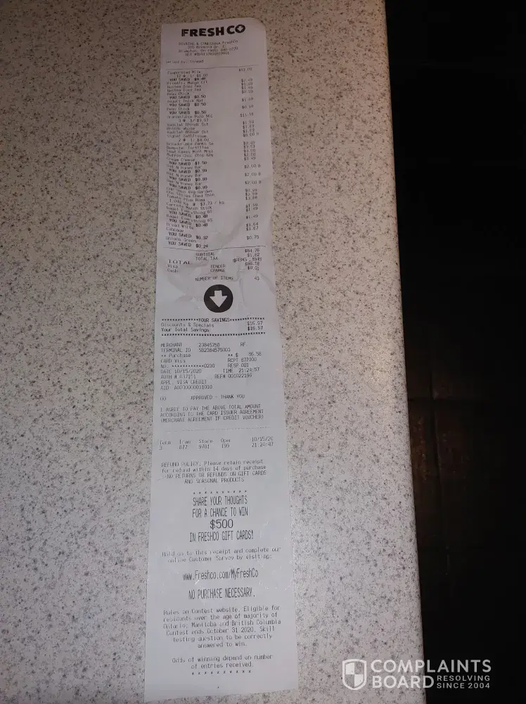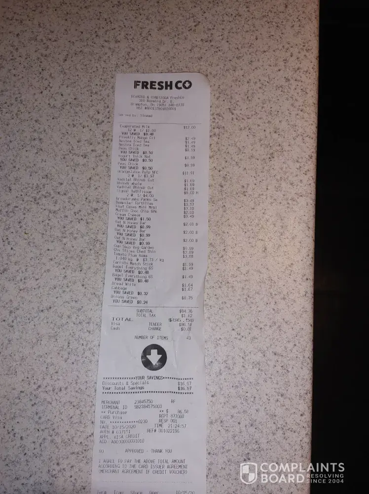 FreshCo reviews and complaints 1